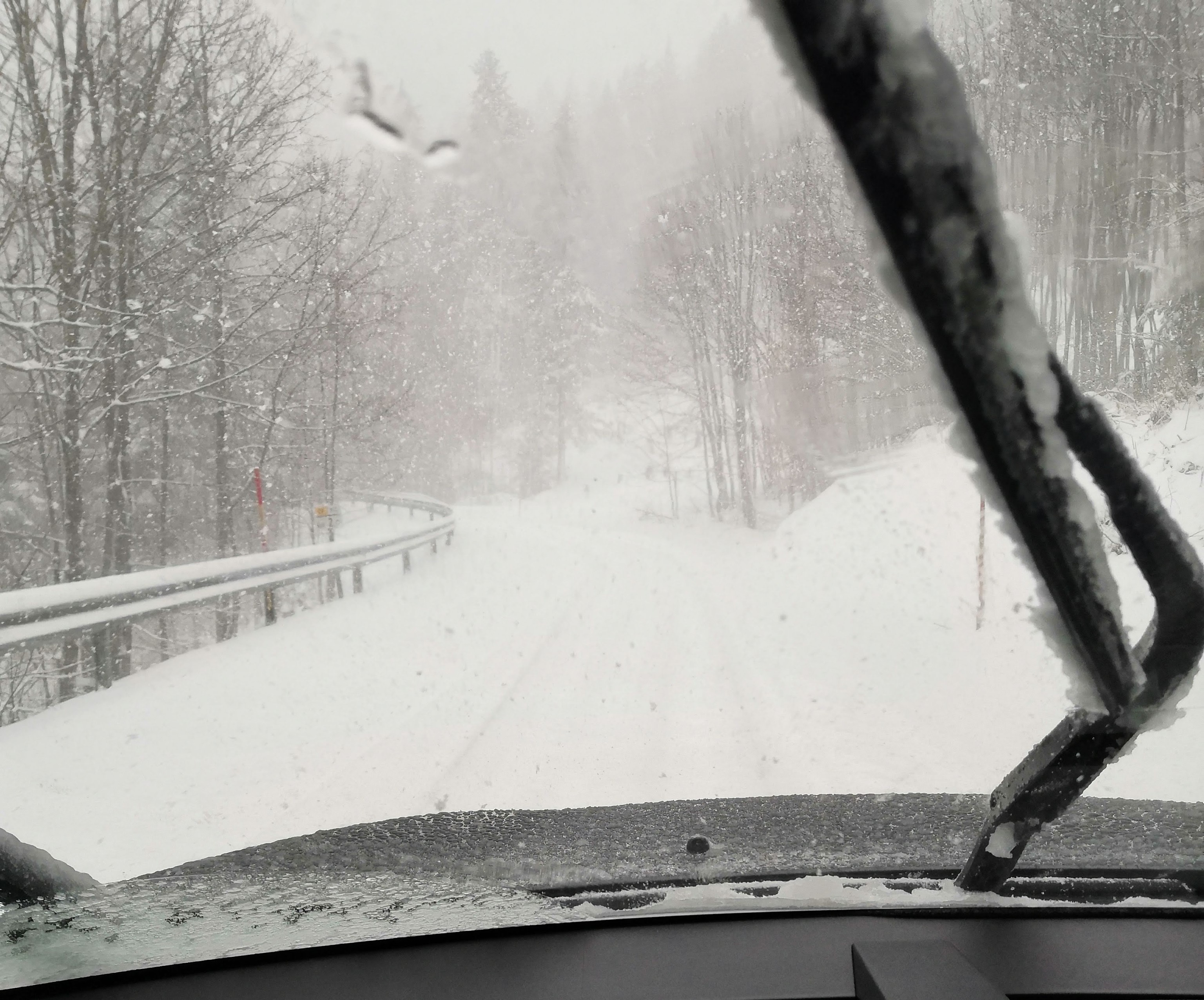 This road has thwarted me in the past – most notably during the road trip from hell: Barcelona to Breg – when my fully loaded van got stuck and we broke the snowchains. But this was the first time ever that I had problems in my 4×4, winter-tyre-equipped car.