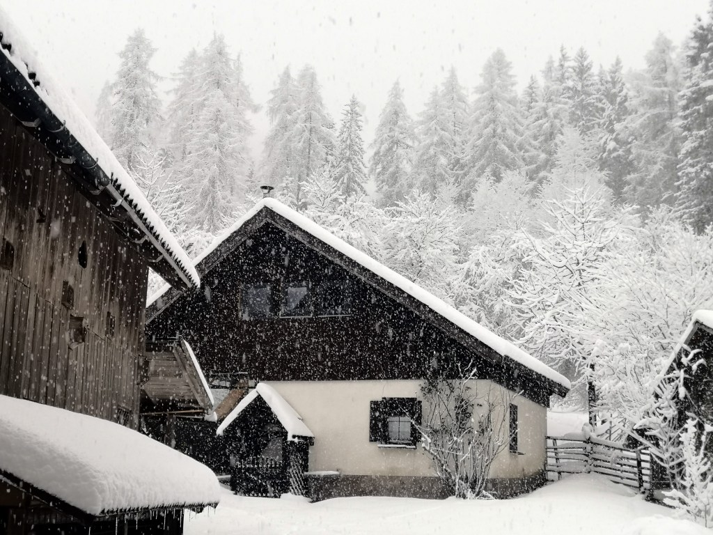 The journey from Ljubljana, however, turned out not to be an easy one. It was already snowing heavily as I reached Jezersko. The road had not been ploughed, but I switched to 4×4 mode and forged ahead anyway.