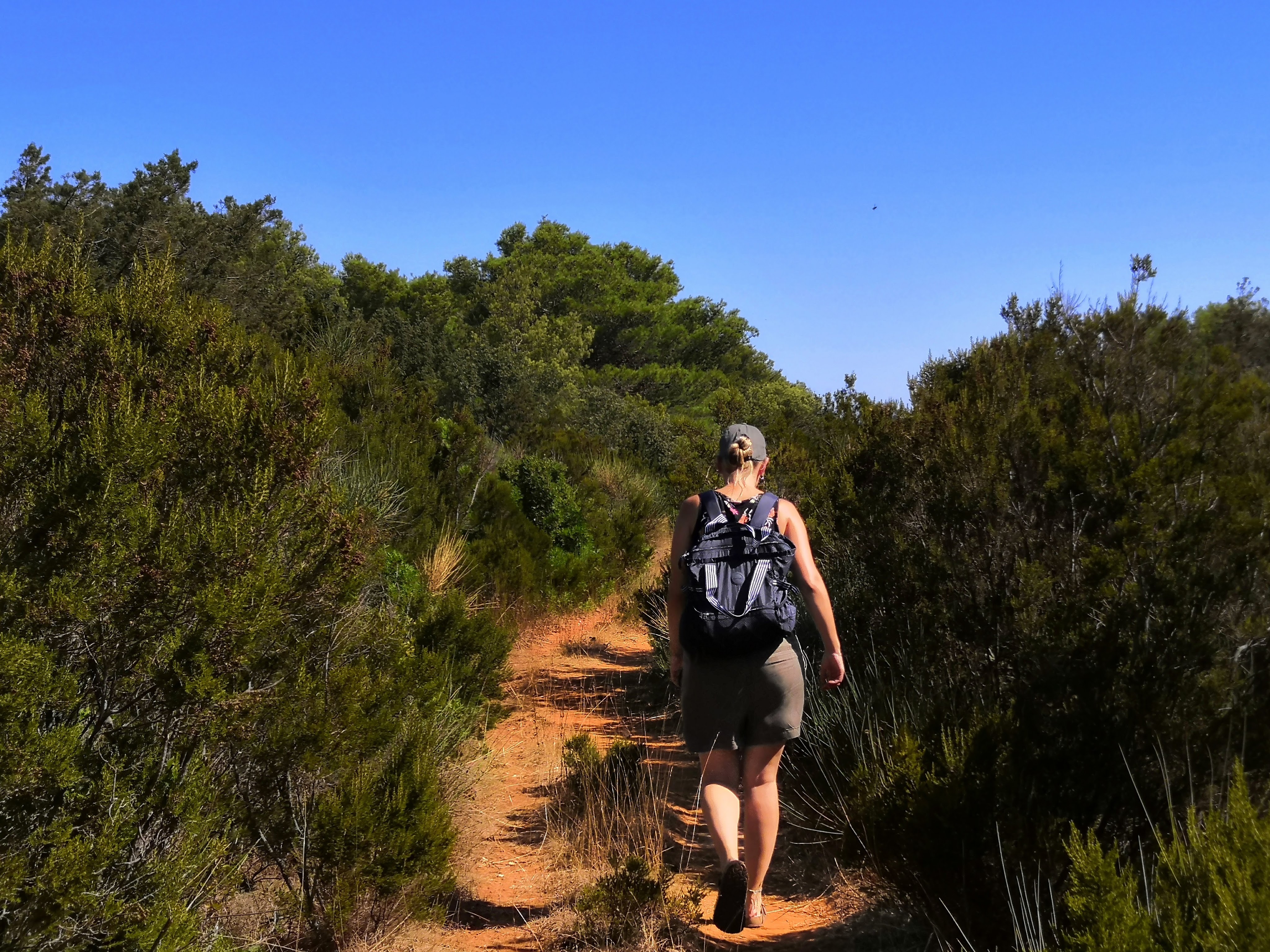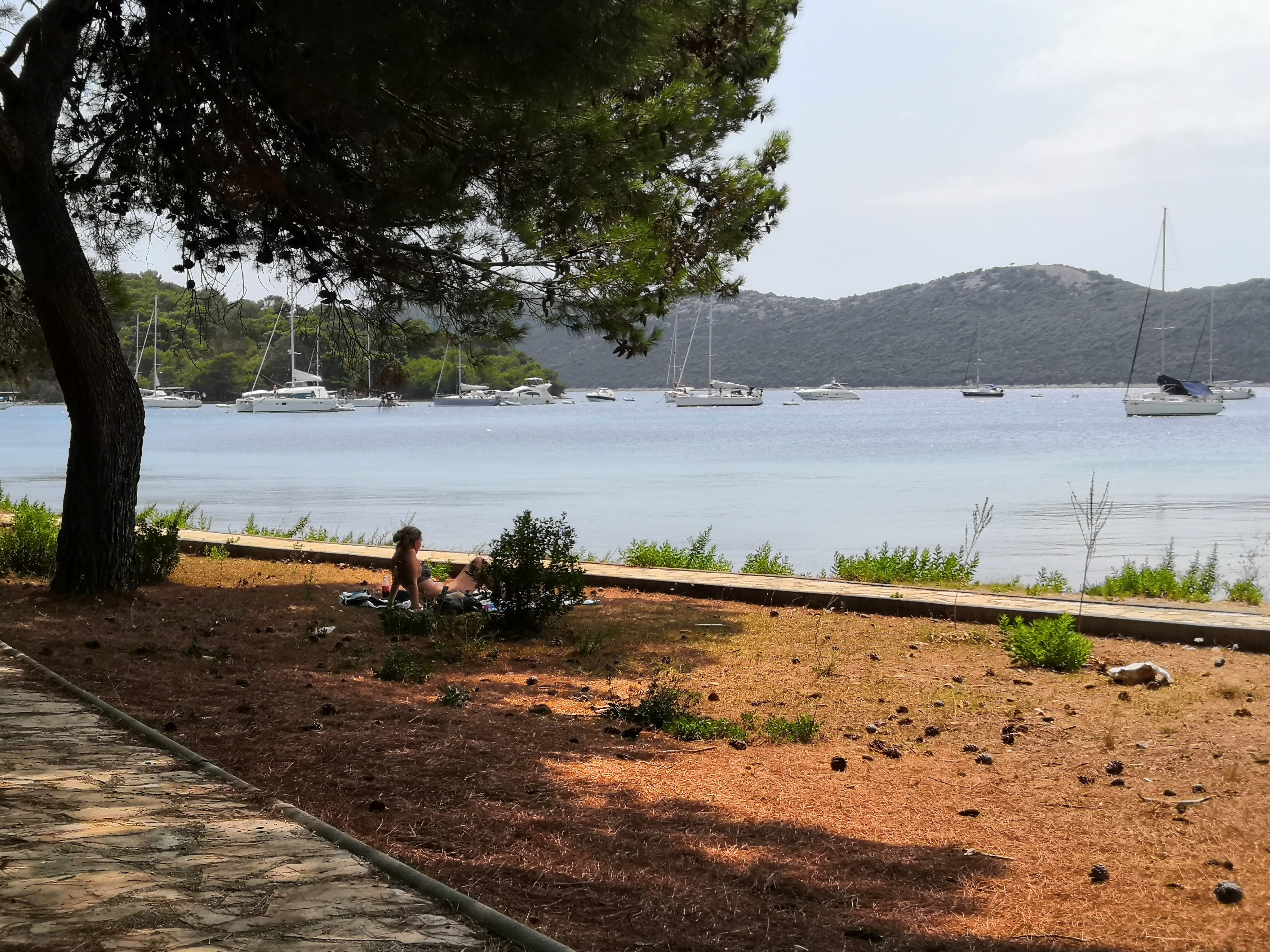 The air was laced with salt and pine resin. And upon the airwaves, the ever-present buzz of cicadas meant that silence did not exist. Green lizards and geckos skittered away as we disturbed their sunbathing. Large, colourful butterflies flapped about like small birds; some had a taste for wine. There was a healthy wasp population who were keen on our drinks too, though they preferred beer and coke (clearly less sophisticated than the butterflies). I saw relatively few birds, but plenty of dogs, many of which arrived on the sailing yachts which moored in the small harbour overnight.