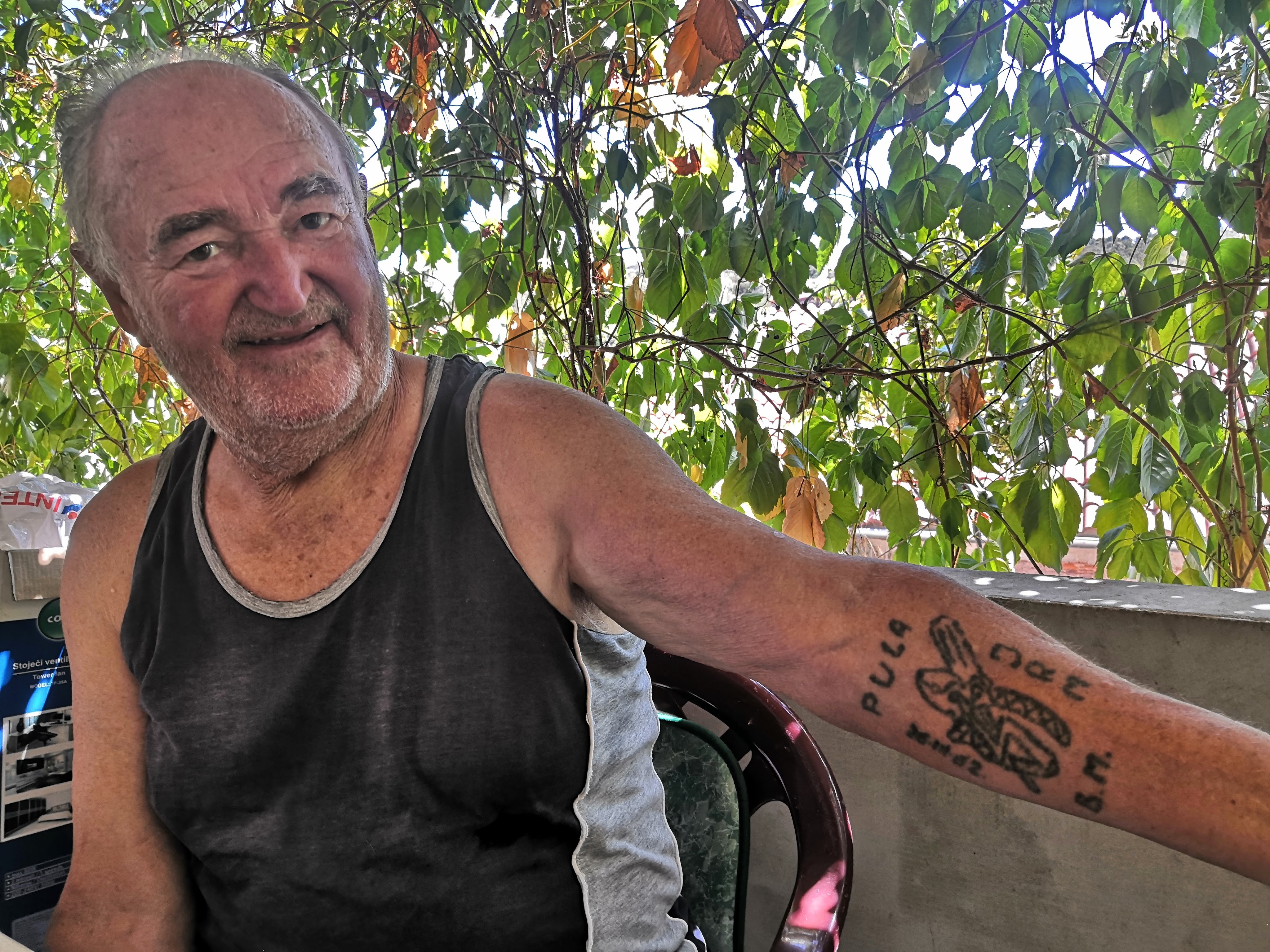 Mirko bore a blurred tattoo on his forearm and I asked him about its origin. He explained he was in the Yugoslavian navy for three years, stationed in the Croatian coastal town of Pula, working as an electrician. He mentioned the word ‘torpedo’ several times, making me wonder if he worked on the small Yugolslav subs, one of which I once visited in the Slovene town of Pivka where they keep one on display.